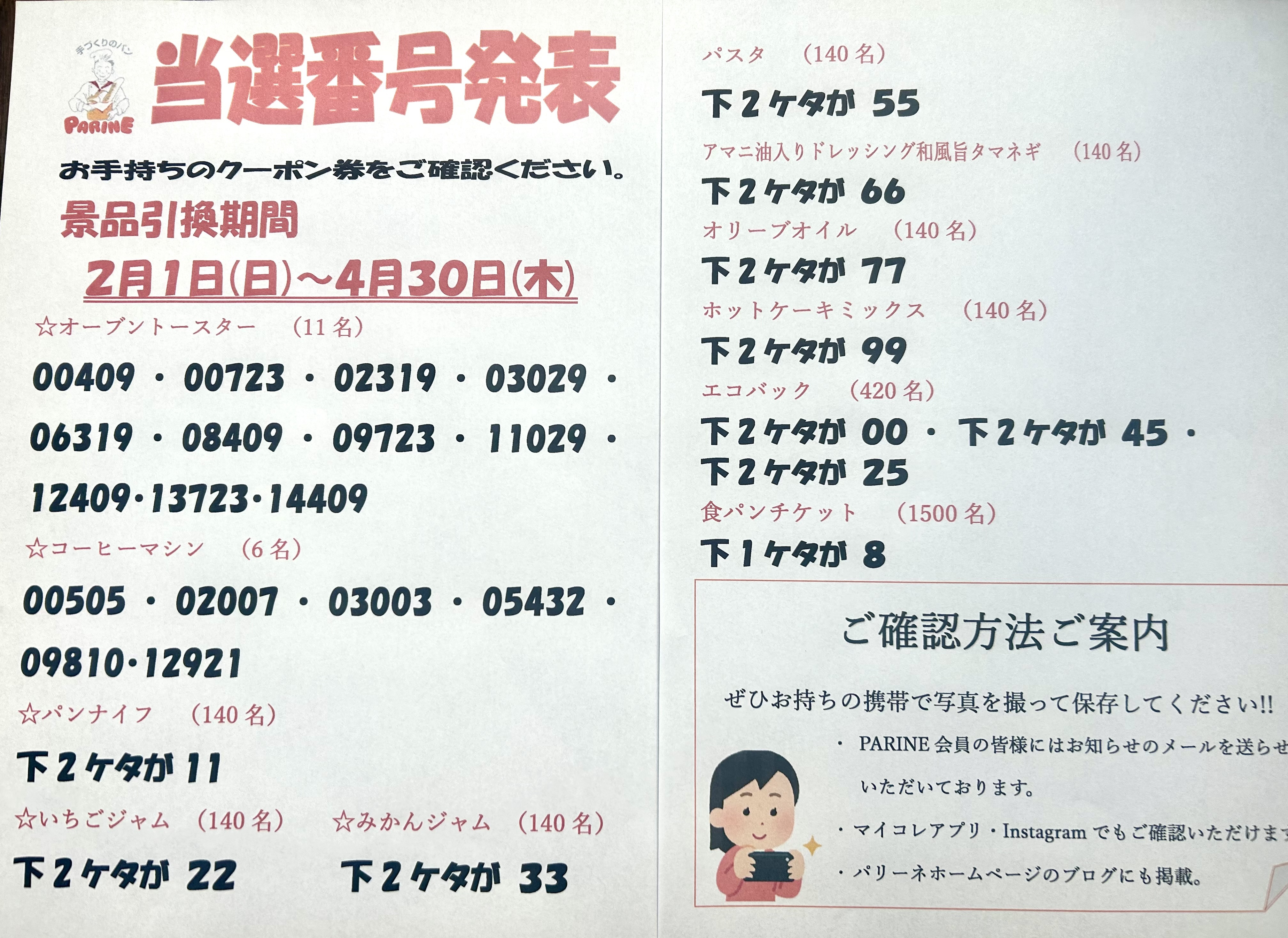 パリーネ40周年クーポン当選番号発表